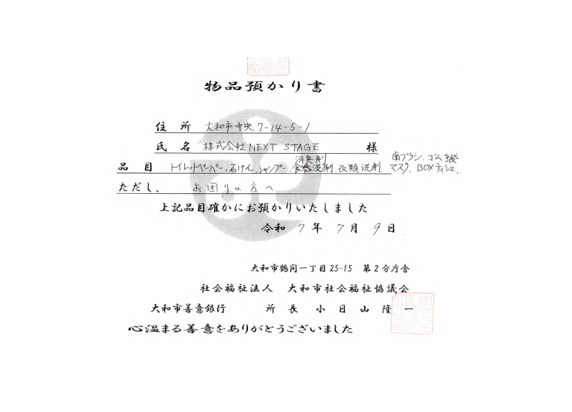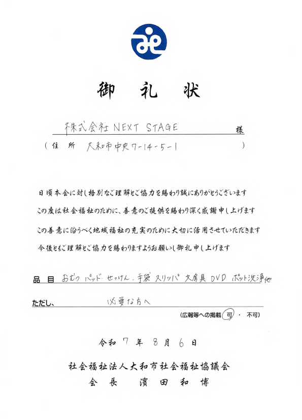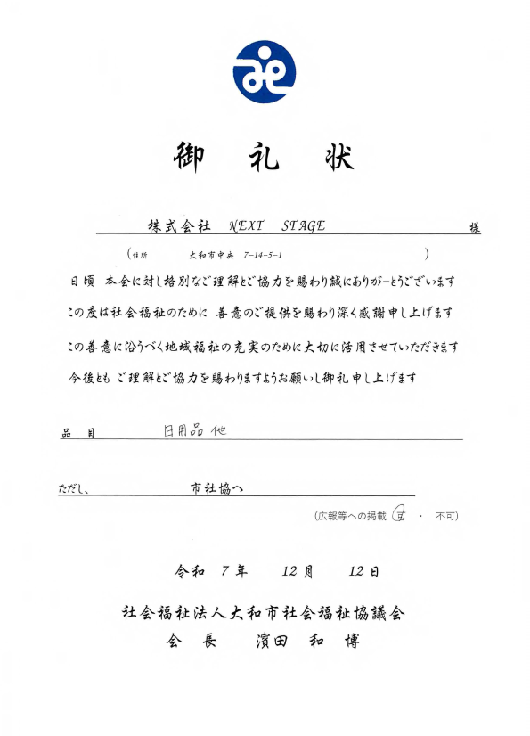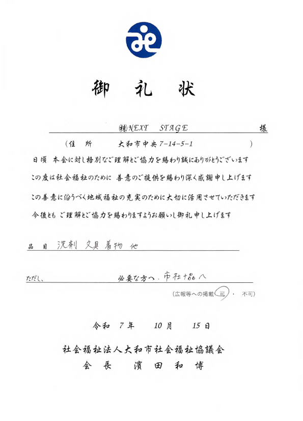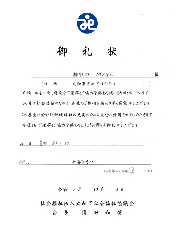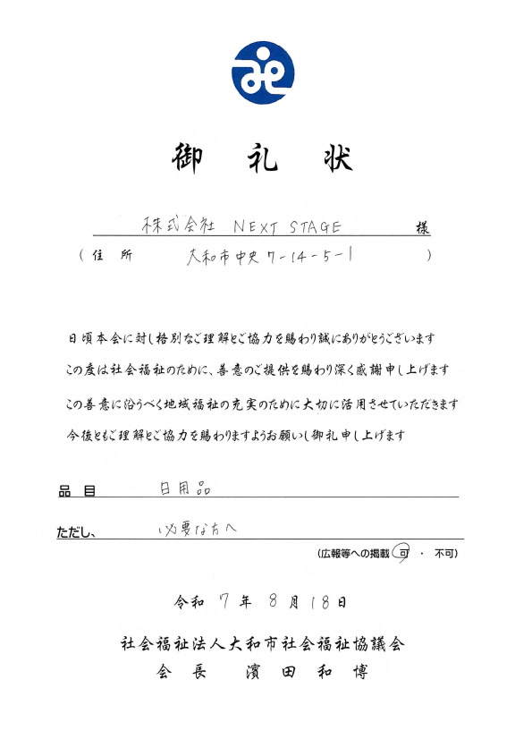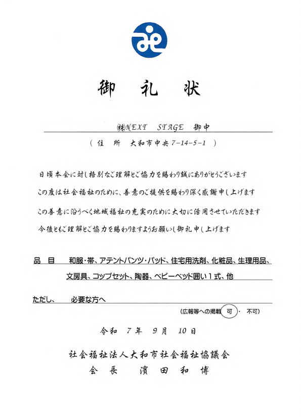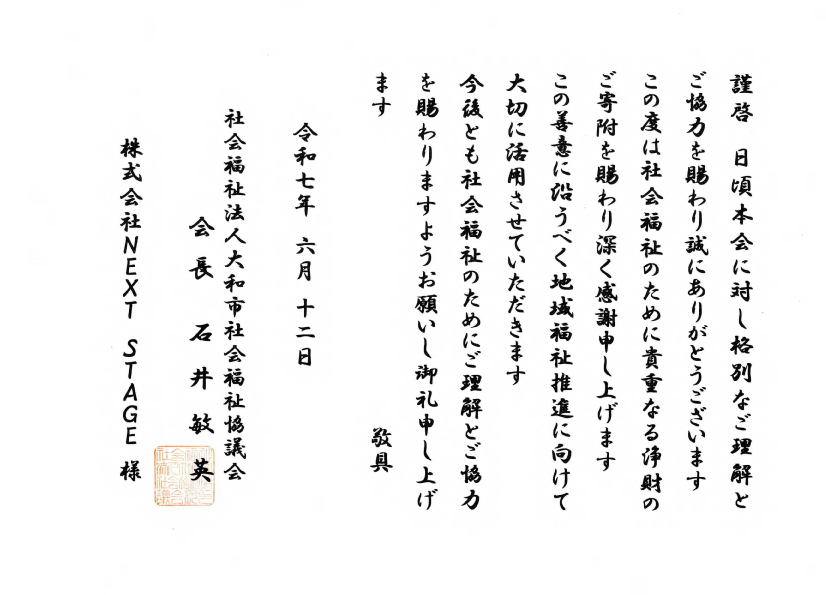 当社では、社会福祉法人・海外輸出への寄付活動を行っています。